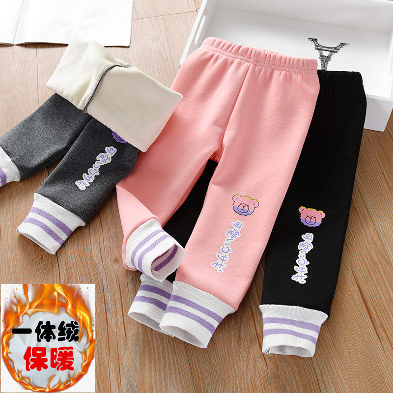 女童外穿加绒打底裤女宝薄绒修身保暖秋冬1-7岁3小女孩一体绒长裤