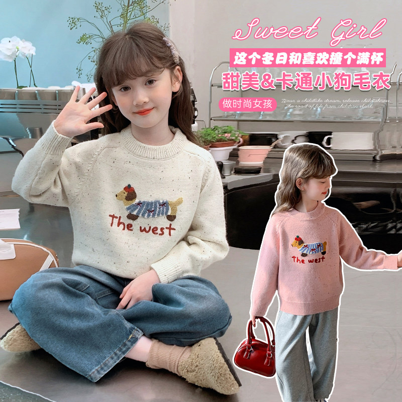 女童毛衣秋冬2025新款时髦6岁7小女孩8网红9圆领可爱儿童加绒线衣