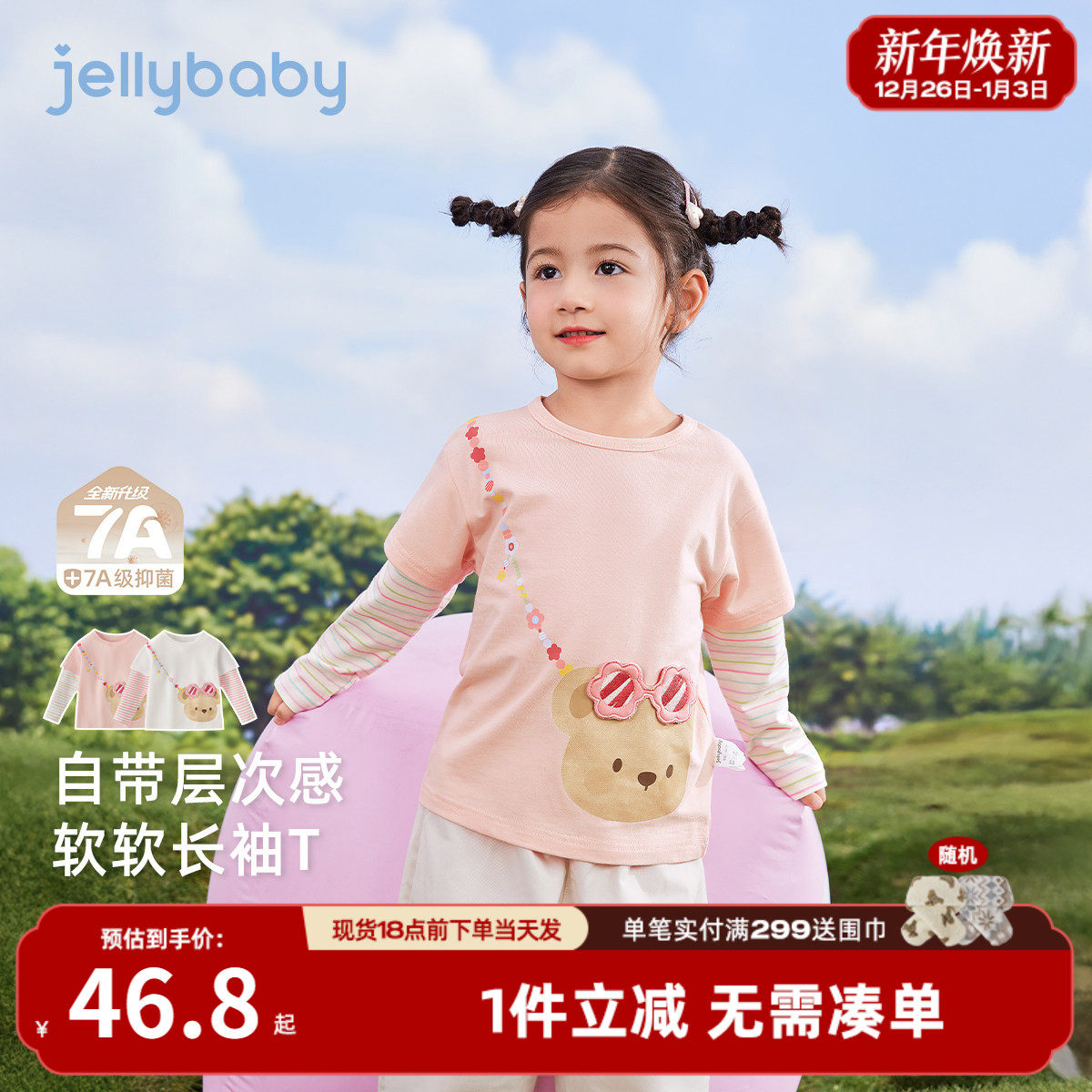 [7A抗菌]女童长袖t恤假两件6岁宝宝秋季衣服女孩新款秋装儿童上衣