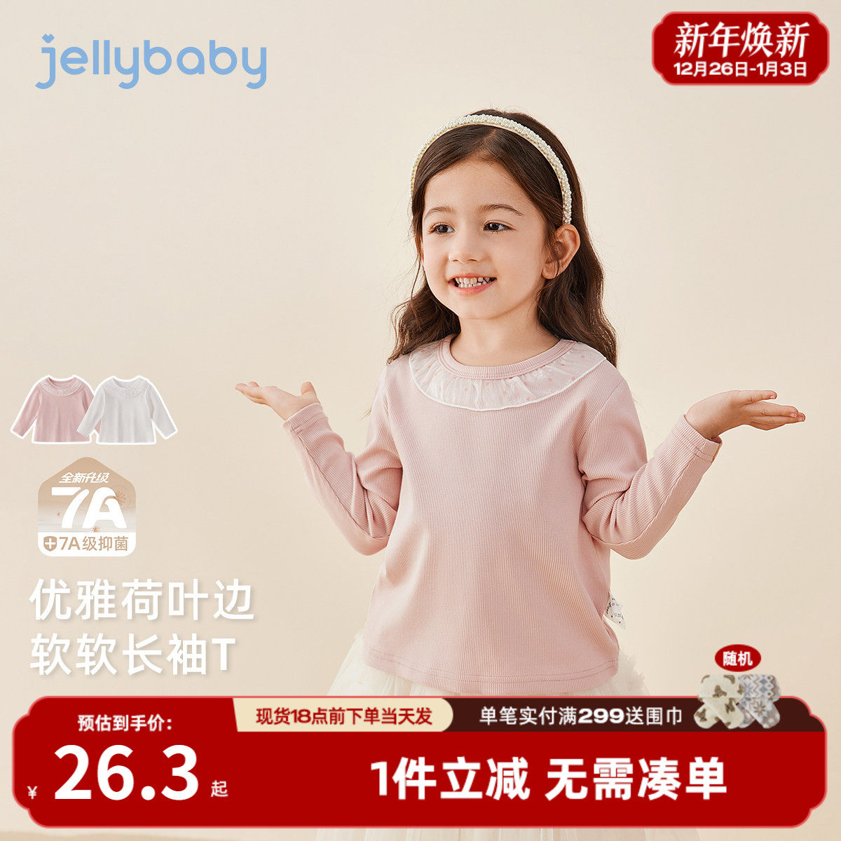 [7A抗菌]女童长袖t恤2025新款6岁宝宝秋季洋气花边圆领儿童上衣女