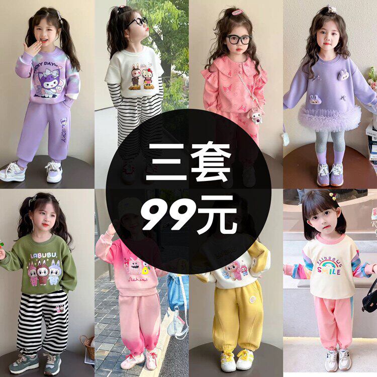 女童秋冬套装3新款儿童加绒洋气卫衣马甲5女孩7加厚运动三件套9岁