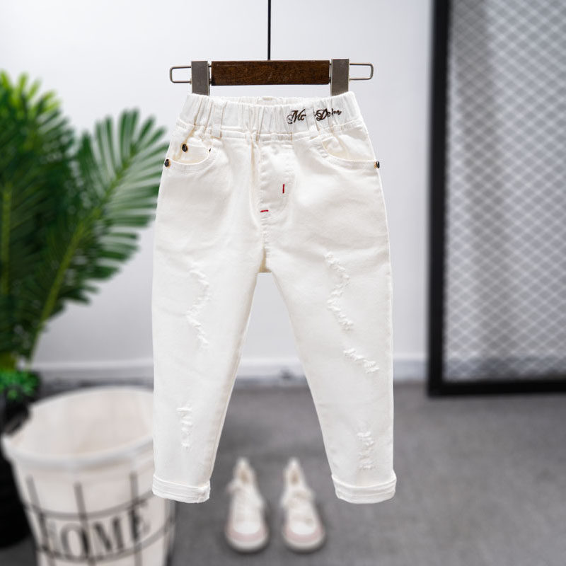 儿童白色长裤2023春秋季新品男女童小脚裤2-7岁洋气弹力修身裤潮
