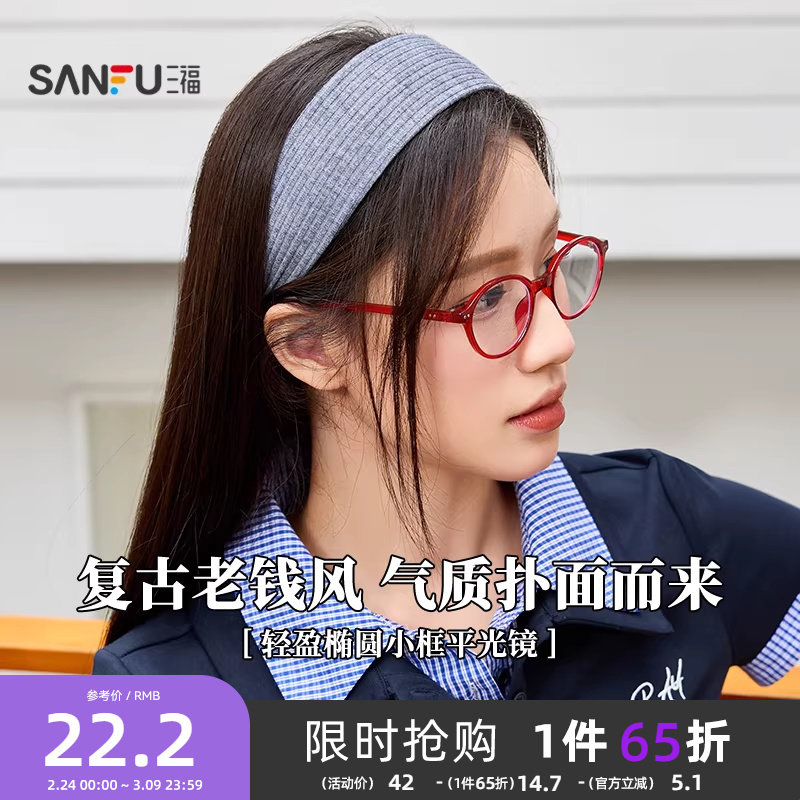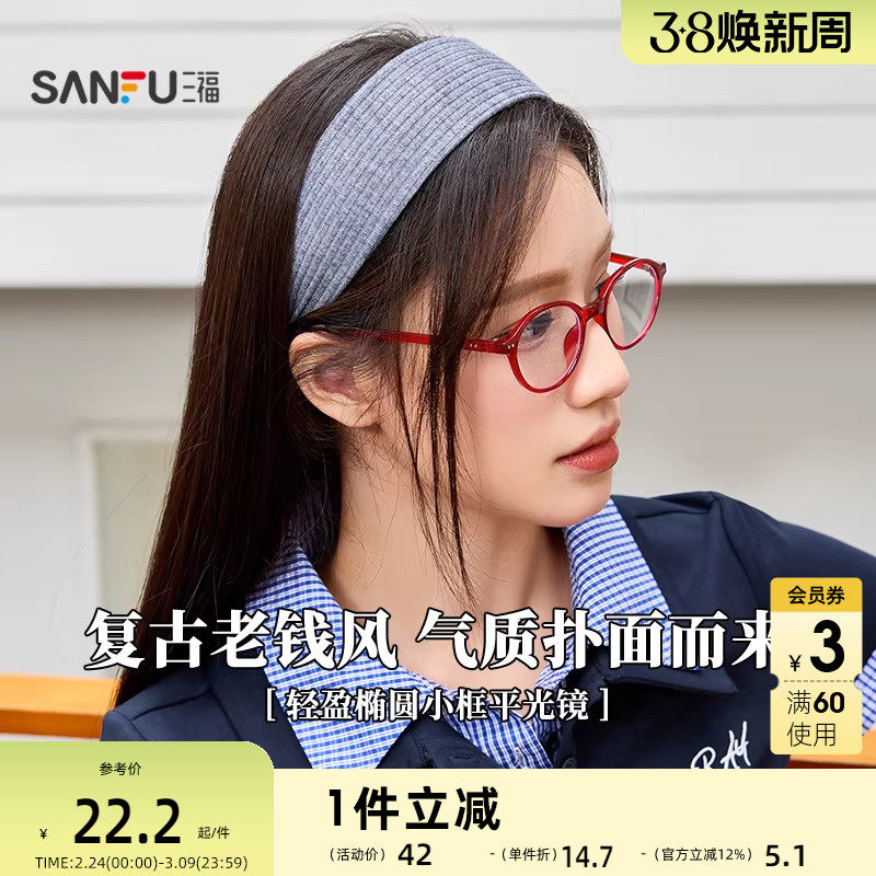 三福复古轻盈椭圆小框平光镜 时尚潮流配饰氛围感眼镜 842247