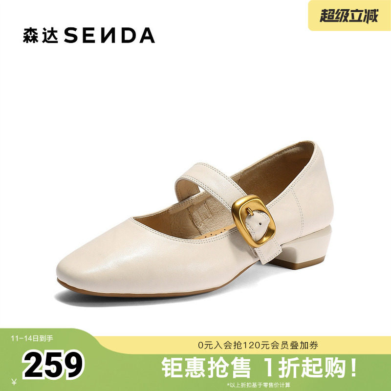 森达玛丽珍女款秋新商场同款法式芭蕾粗跟浅口单鞋XPG01CQ5