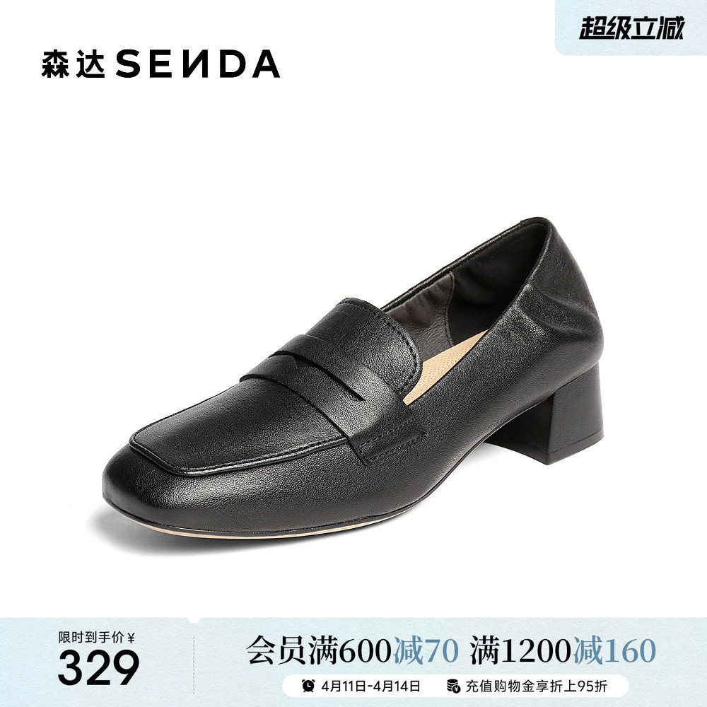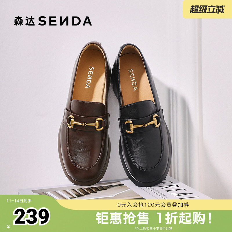 森达复古乐福鞋女款春秋新款商场同款通勤马衔扣粗跟单鞋XLS01AA5
