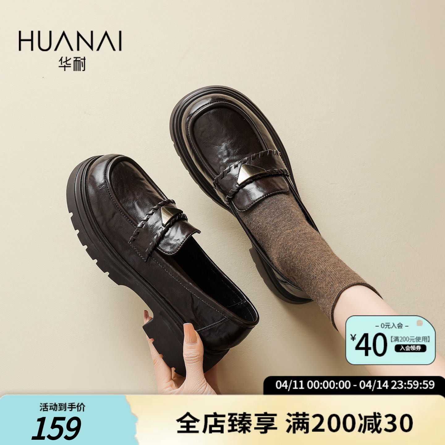 华耐英伦风小皮鞋女款2026春季新款一脚蹬粗跟通勤单鞋厚底乐福鞋