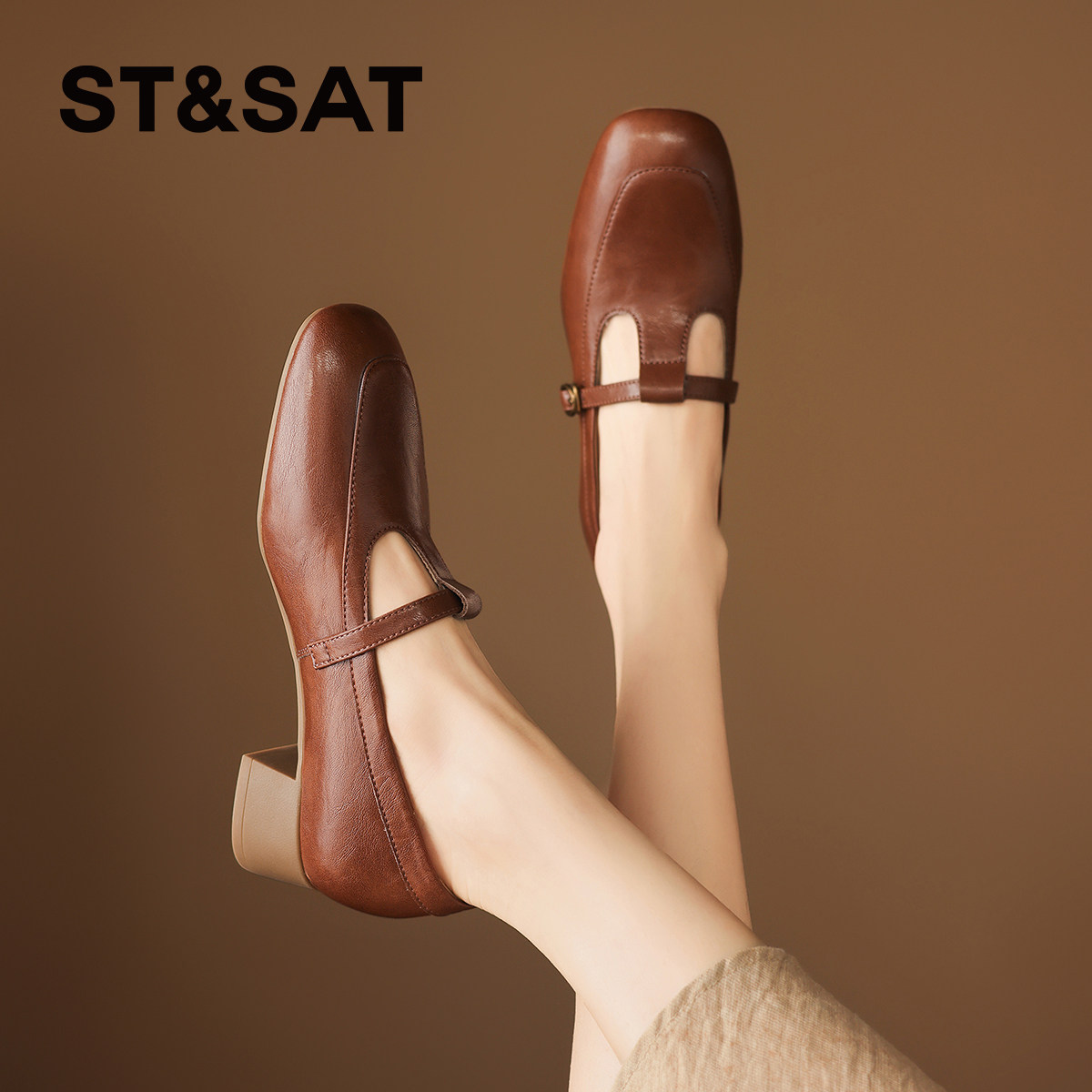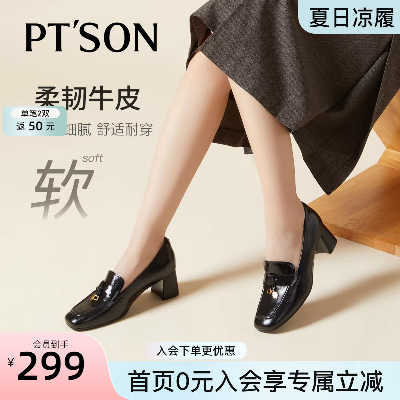 - 单鞋女 中跟 粗跟皮鞋