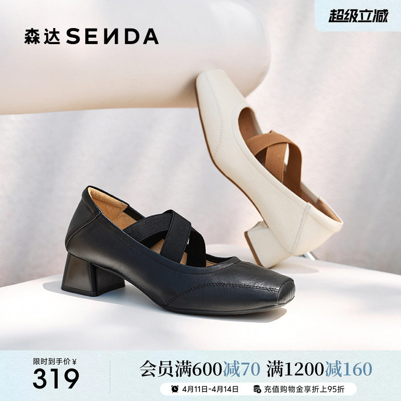 森达猪鼻子粗跟玛丽珍女款春秋季商场同款法式芭蕾浅口单鞋XPG01