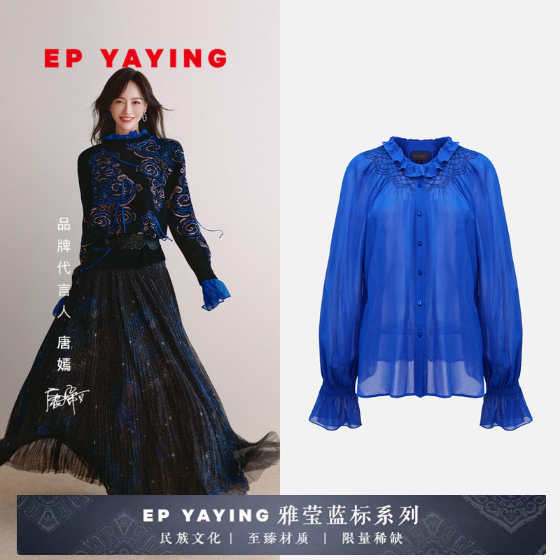 [唐嫣同款]EP雅莹蓝标|木耳领荷叶袖刺绣衬衫 2025早秋新款2231A