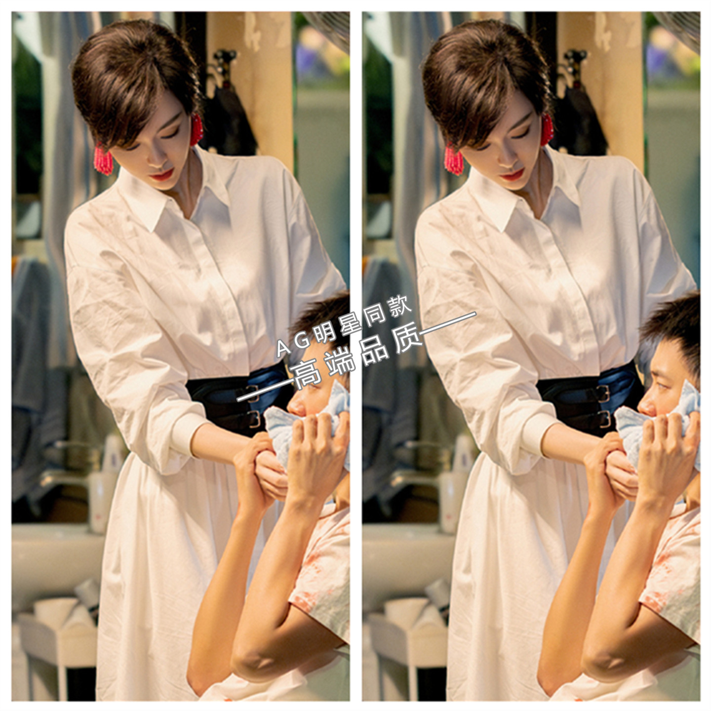 爱情没有神话唐嫣林展翘同款白色长袖衬衫裙腰封收腰连衣裙长裙子
