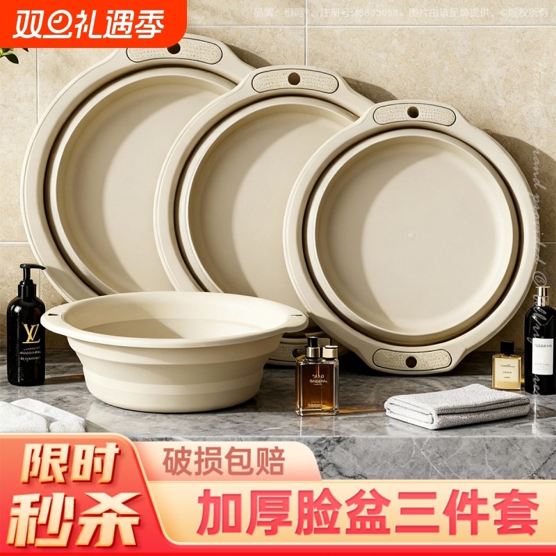 新款可挂式折叠盆便携式旅行加厚三件套加厚耐用家用学生宿舍洗脸