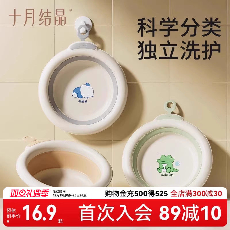 十月结晶婴儿洗脸盆新生儿用品宝宝盆洗脚洗pp盆儿童可用可折叠盆