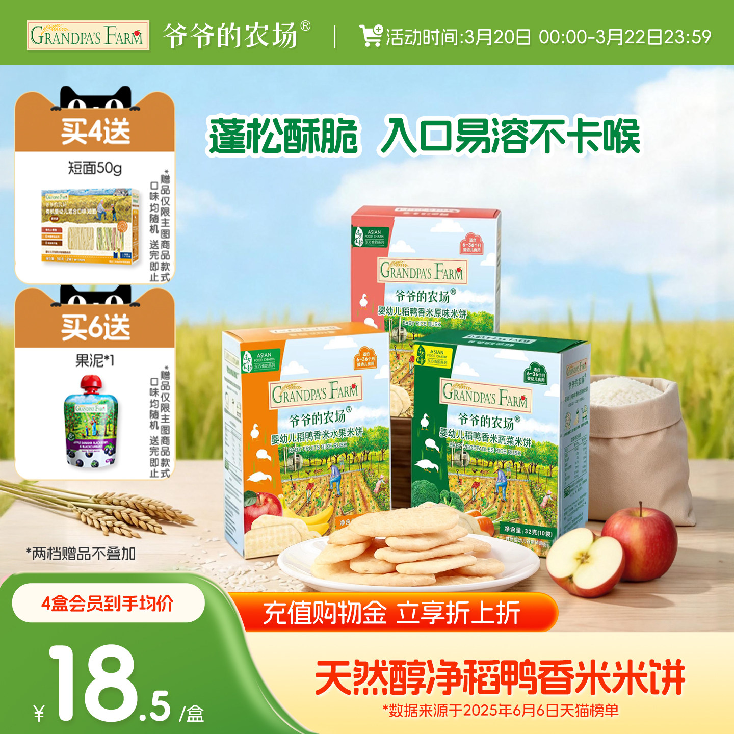 【零食119元任选】爷爷的农场宝宝零食米饼泡芙溶豆宝宝磨牙饼干