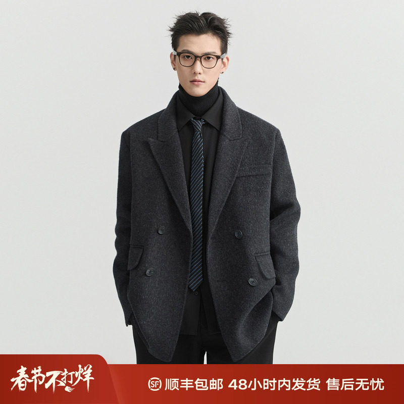 伯爵卓尔25秋冬季定织全羊毛双面呢大衣男士垫肩加厚呢子西装外套