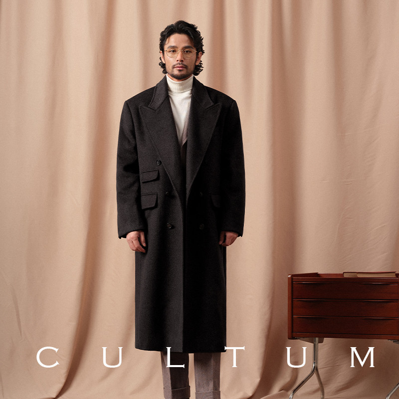 CULTUM100%羊毛加厚880g重柴斯特呢子大衣男中长款戗驳领双排外套