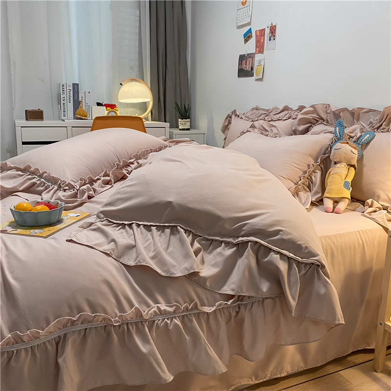 花边韩式四件套公主风少女心纯色被套床单床裙床罩床上用品三件套