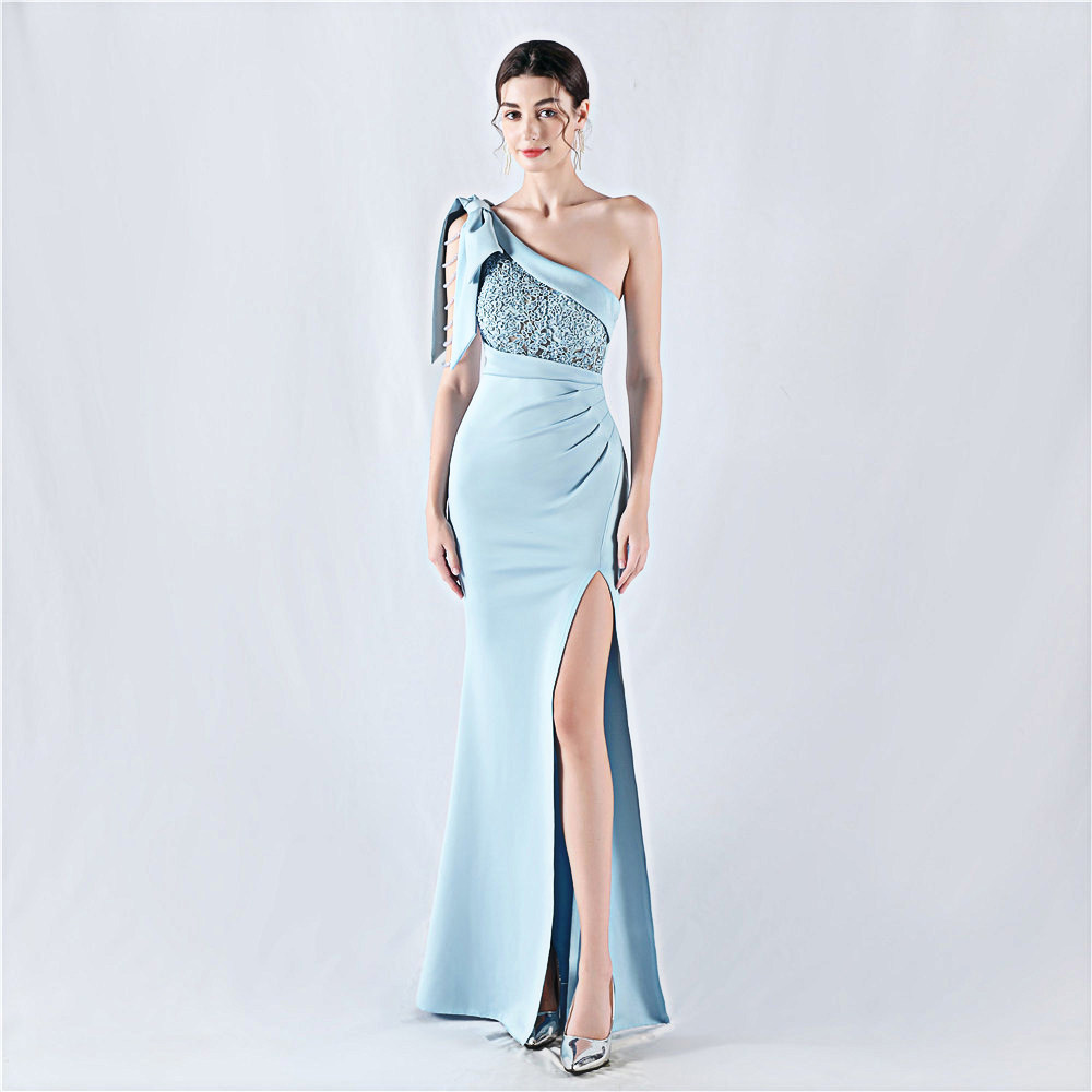晚礼服裙女高级感主持人公司年会演出高端名媛气质单肩长款连衣裙