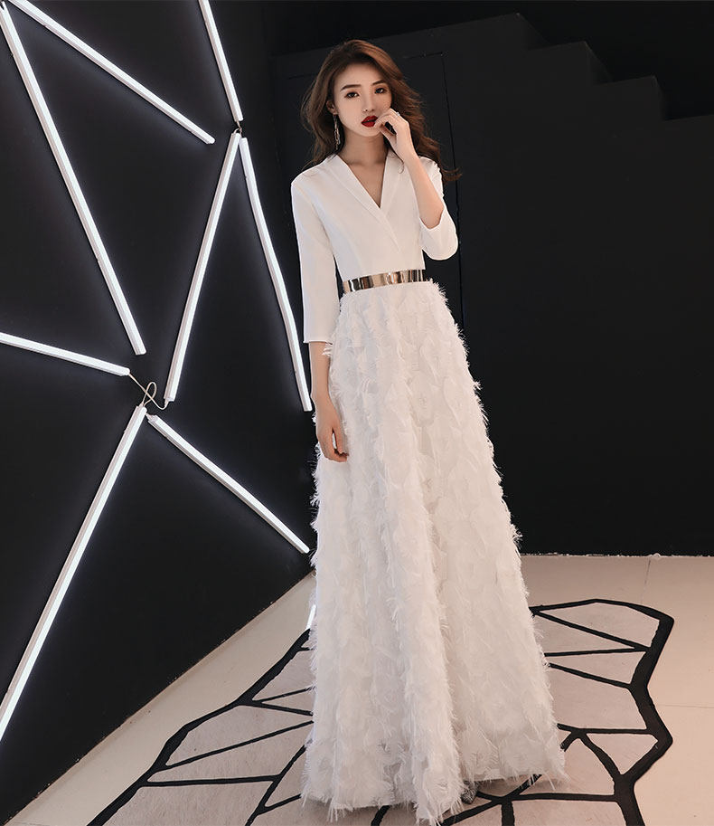 白色主持人晚礼服裙女2025新款端庄大气高级感公司年会春晚演出服