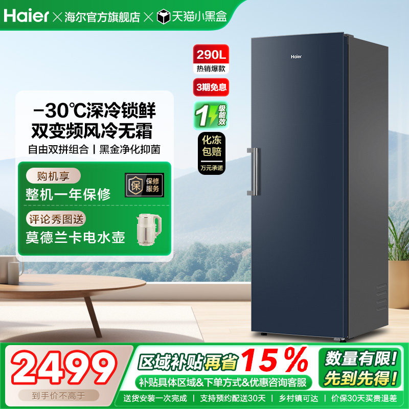 海尔小红花套系290/335升立式小型无霜冷柜家用冷冻冰箱冰柜