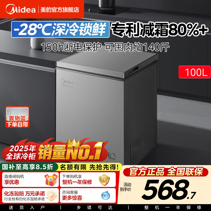 美的100/143/200L冰柜家用小型冷柜冷冻冷藏一级母乳冰箱官方旗舰