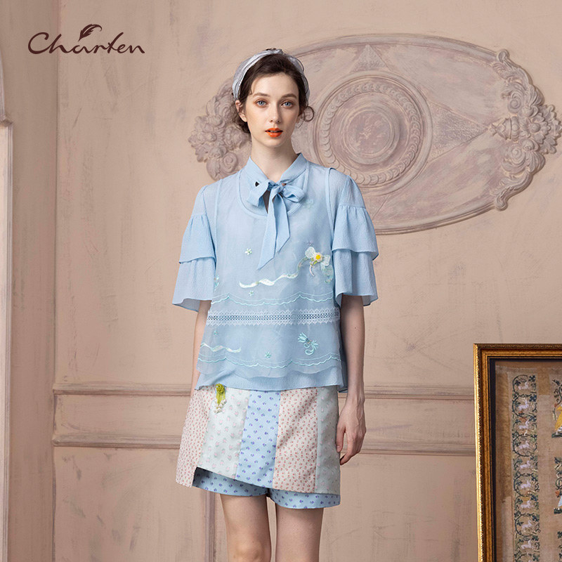 - 蝴蝶结上衣衬衫