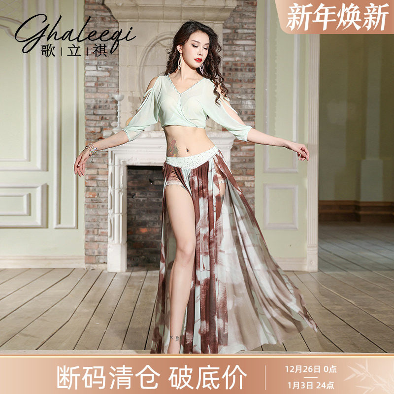 【清仓价】歌立祺肚皮舞演出服网纱印花水纱性感显瘦蝙蝠袖表演服