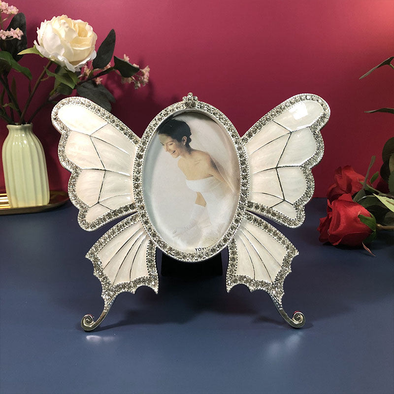 高档欧式装饰相框摆台 创意3/5/寸金属蝴蝶像框摆件带洗照片
