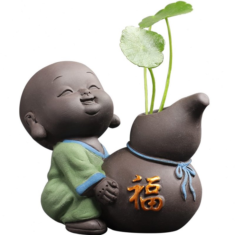 可爱小和尚花器创意茶宠摆件精品可养紫砂茶台茶具配件水培小花瓶