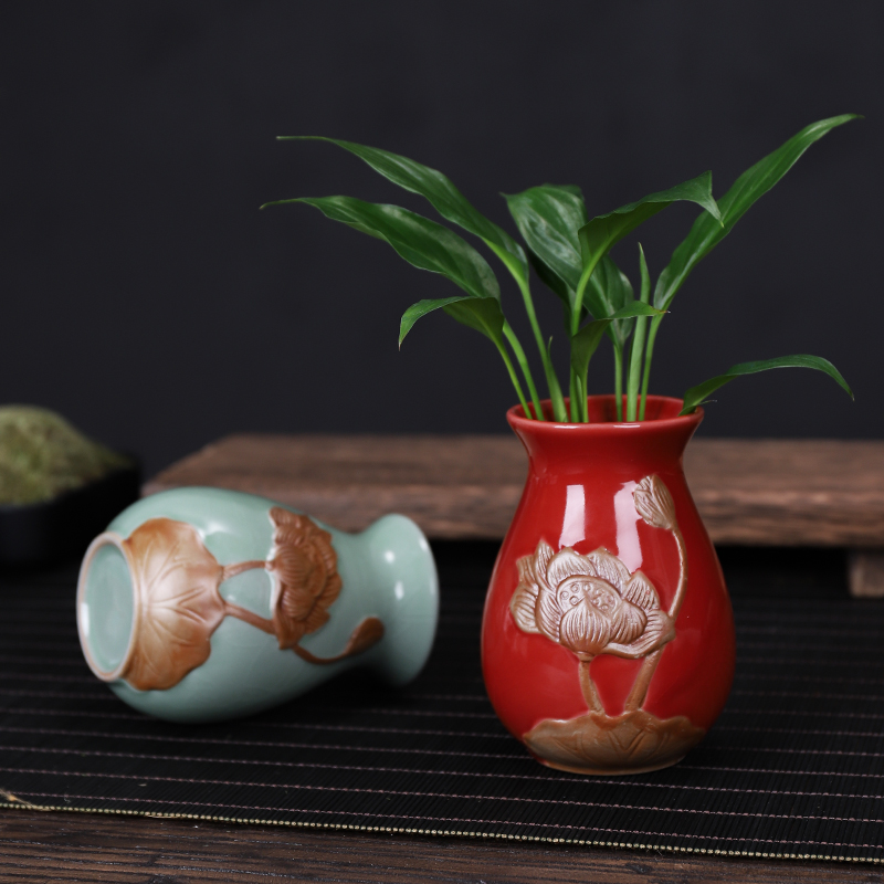 创意绿萝水培小花瓶哥窑陶瓷水养植物花盆鲜花插花器桌面装饰摆件