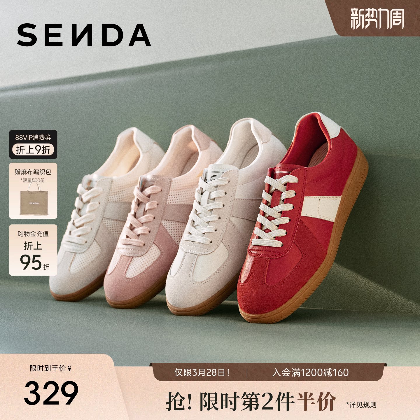 森达网面德训鞋女百搭运动透气休闲鞋新款超火经典小白板鞋内增高
