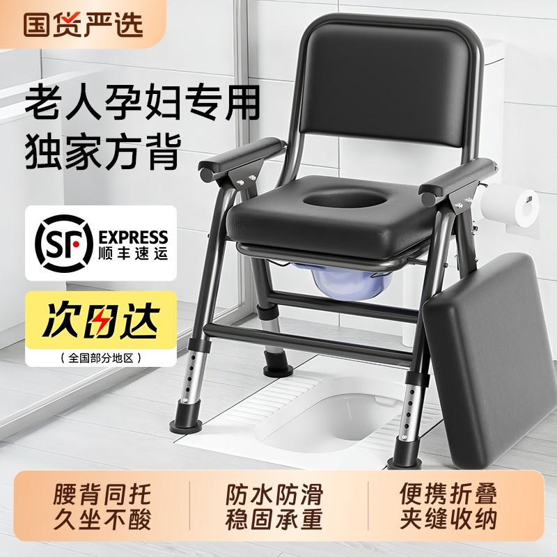 老人坐便椅加固防滑可折叠坐便器残疾人家用移动马桶孕妇马桶椅凳