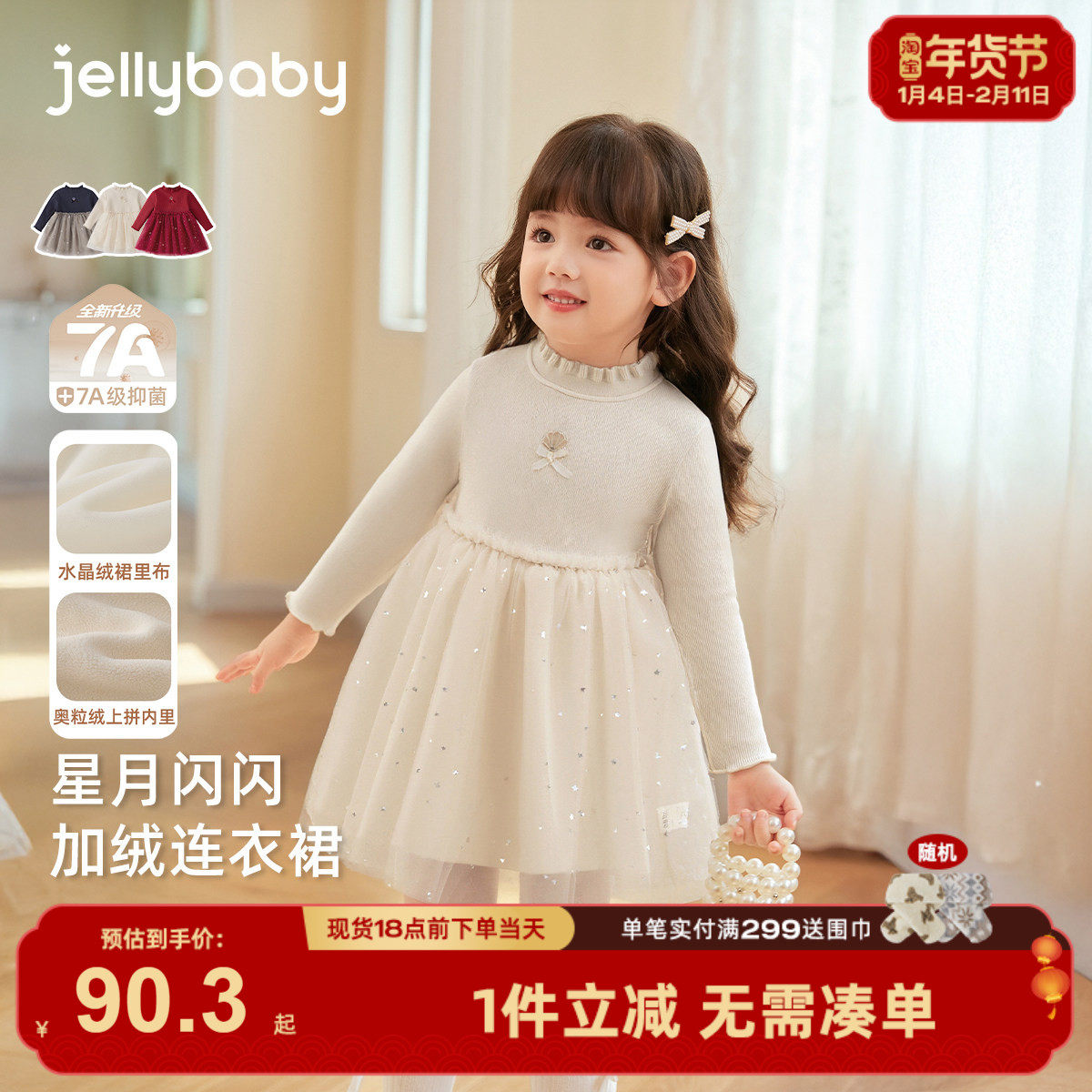 [抗菌远红外]女童连衣裙冬宝宝秋冬加绒纱裙生日礼服儿童公主裙女