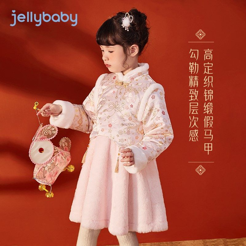 拜年服女童加厚礼服连衣裙冬季2026新款女宝宝冬装儿童过年服裙子