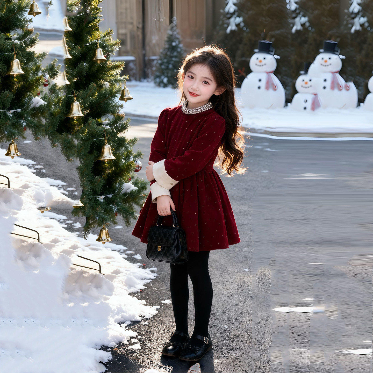 INSbobo女童连衣裙2025秋冬新款周岁女宝礼服冬季加绒儿童裙子潮