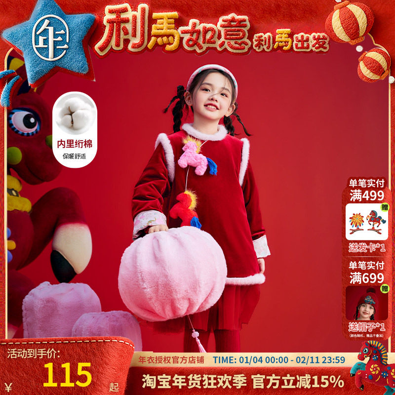 年衣童装长袖连衣裙冬季新款女童加厚生肖马年蓬蓬裙新年礼服拜年