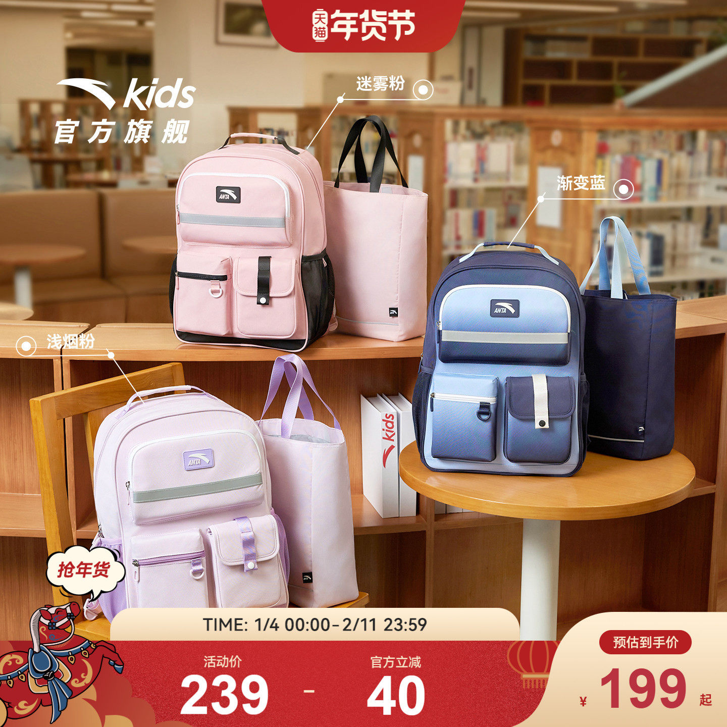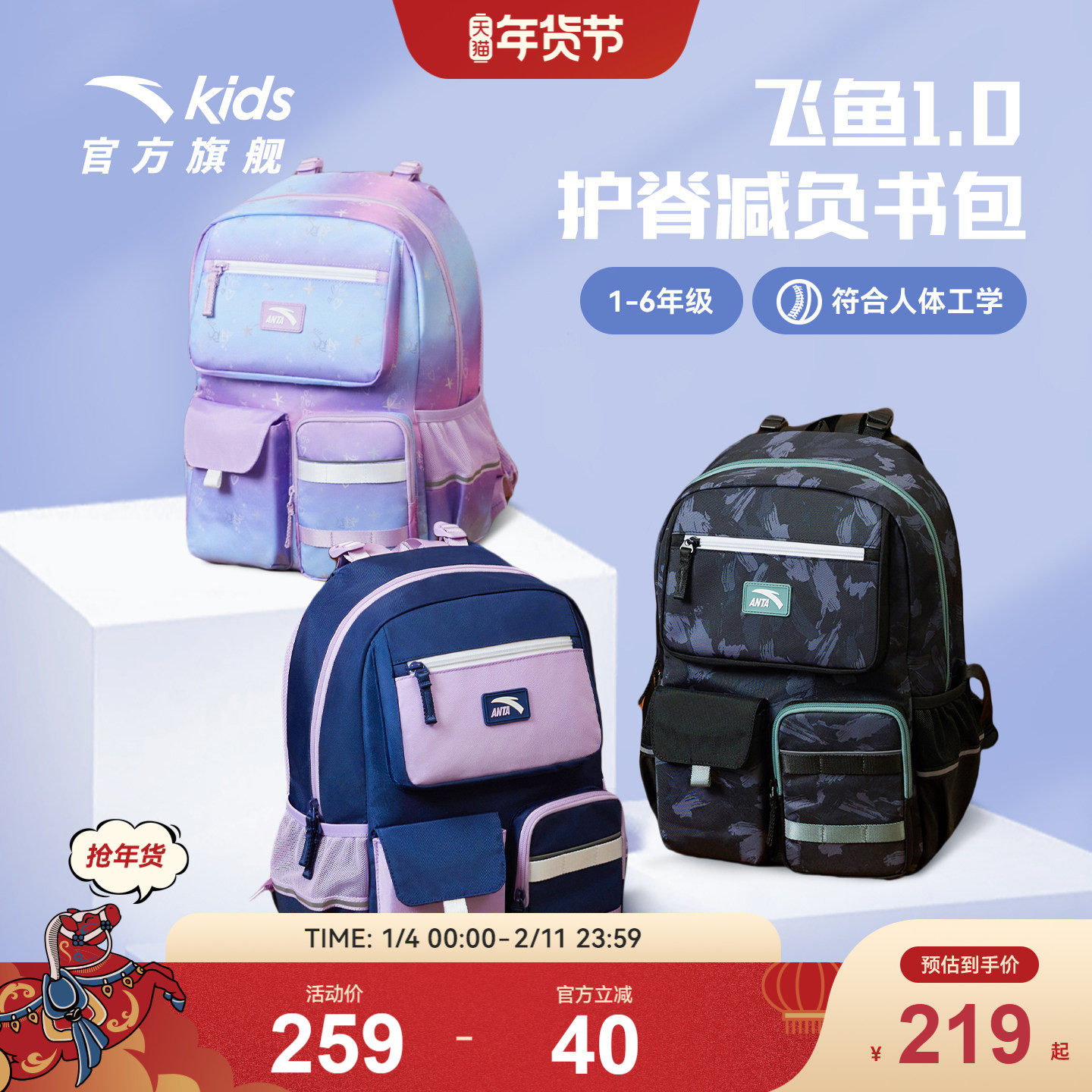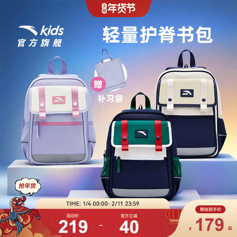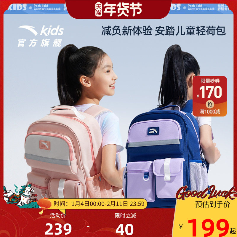 【商场同款】安踏儿童书包男小学生书包女生轻便护脊双肩包大容量