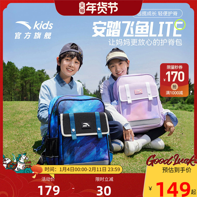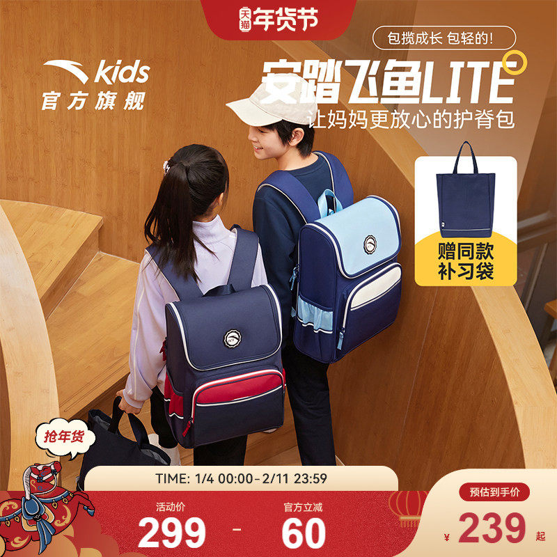飞鱼LITE安踏儿童书包女生小学生书包男轻便减负双肩包一到六年级