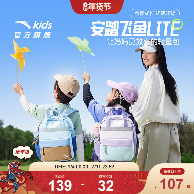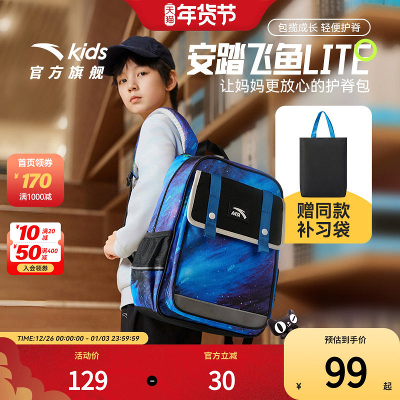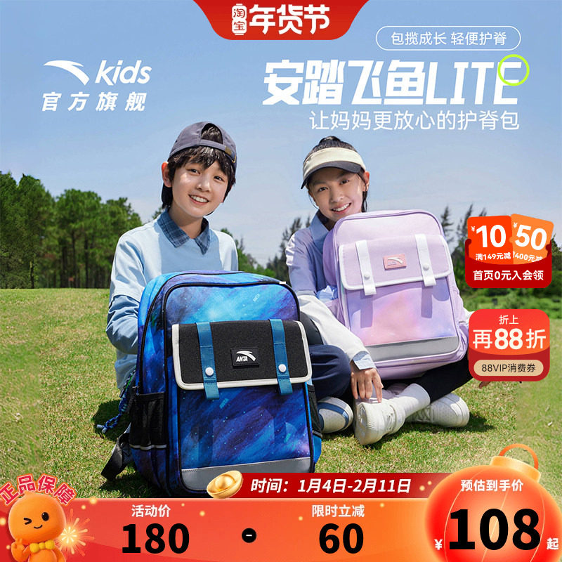商场同款安踏儿童书包男小学生书包女2025新款飞鱼减负双肩包背包
