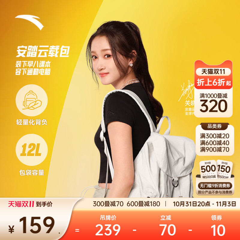 安踏开学书包双肩包女包新款学生休闲简约百搭通勤旅游大容量背包