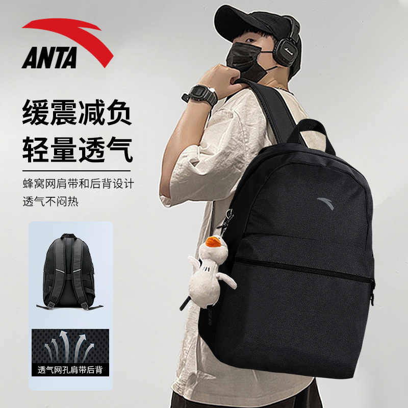 安踏书包休闲简约2025新款大容量旅行背包学院风初中生黑色双肩包
