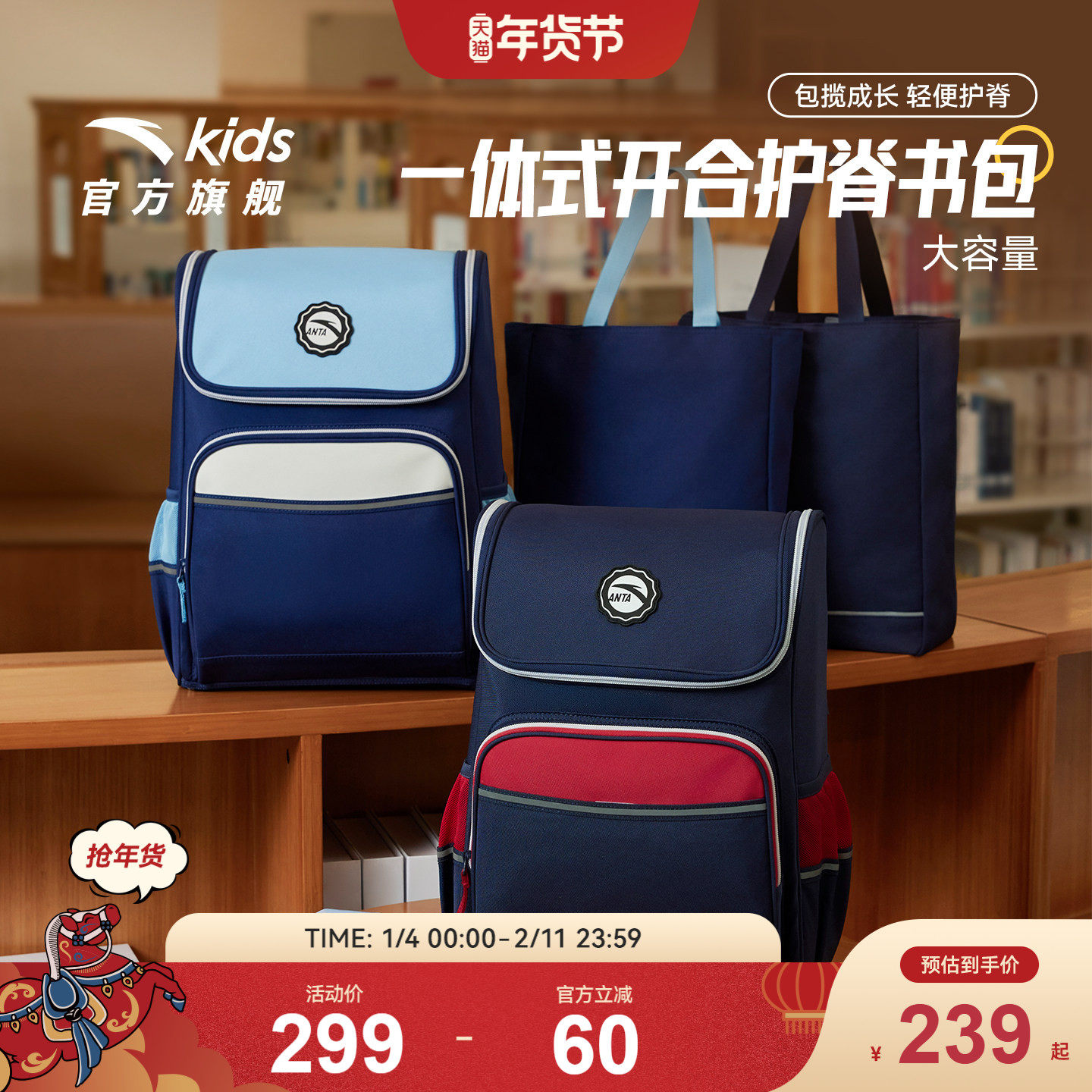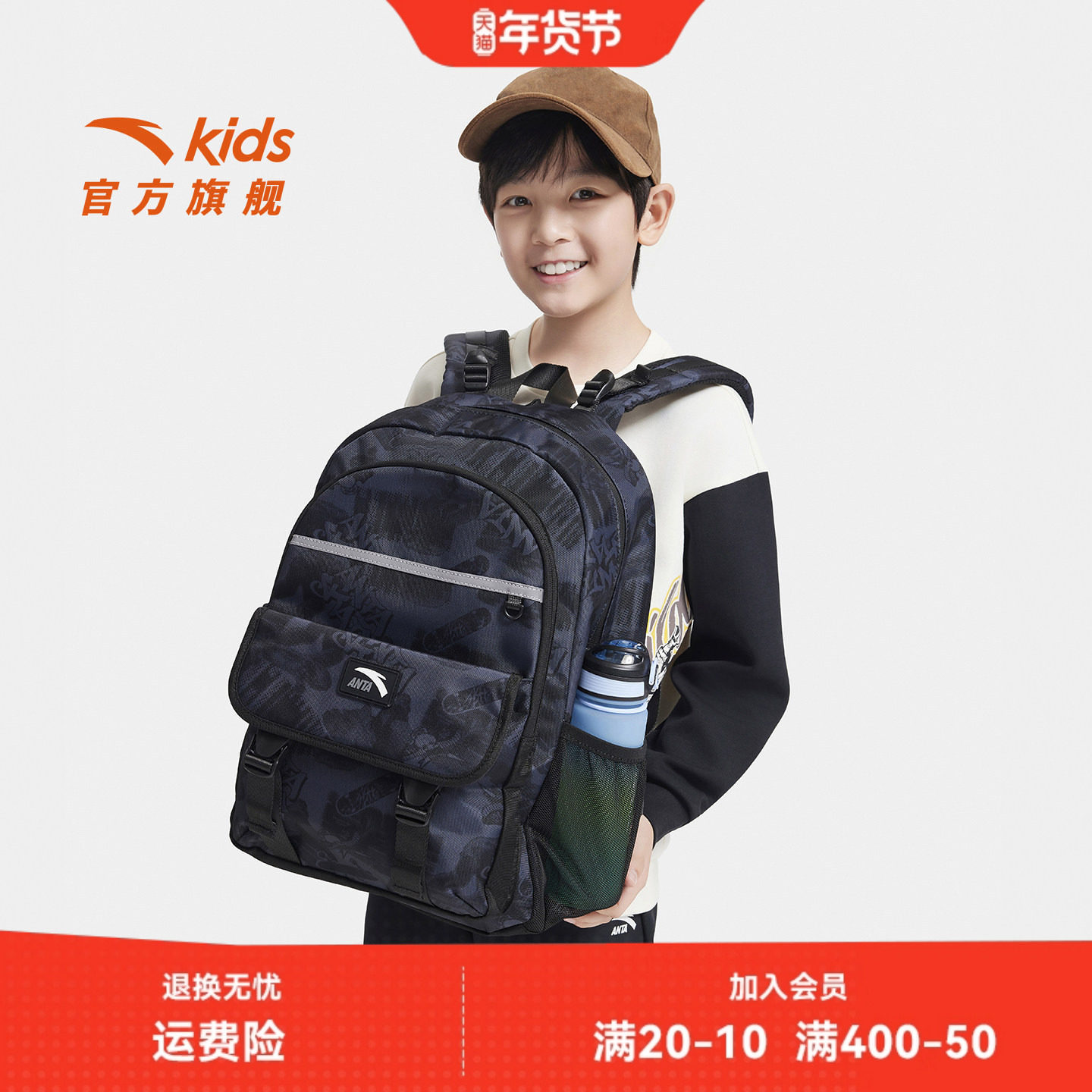 商场同款国潮安踏儿童书包小学生书包男女初中生减负双肩包大容量