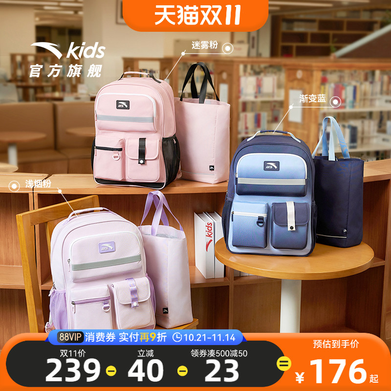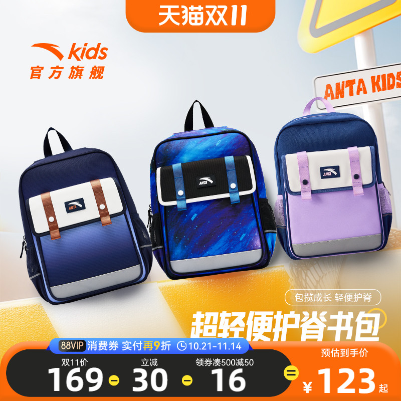 安踏儿童书包超轻小学生书包男3-6年级女生背包校园大容量双肩包