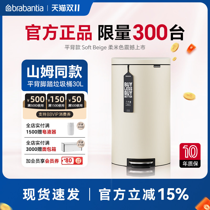 brabantia柏宾士垃圾桶脚踏式30L家用不锈钢厨房餐厅平背山姆同款