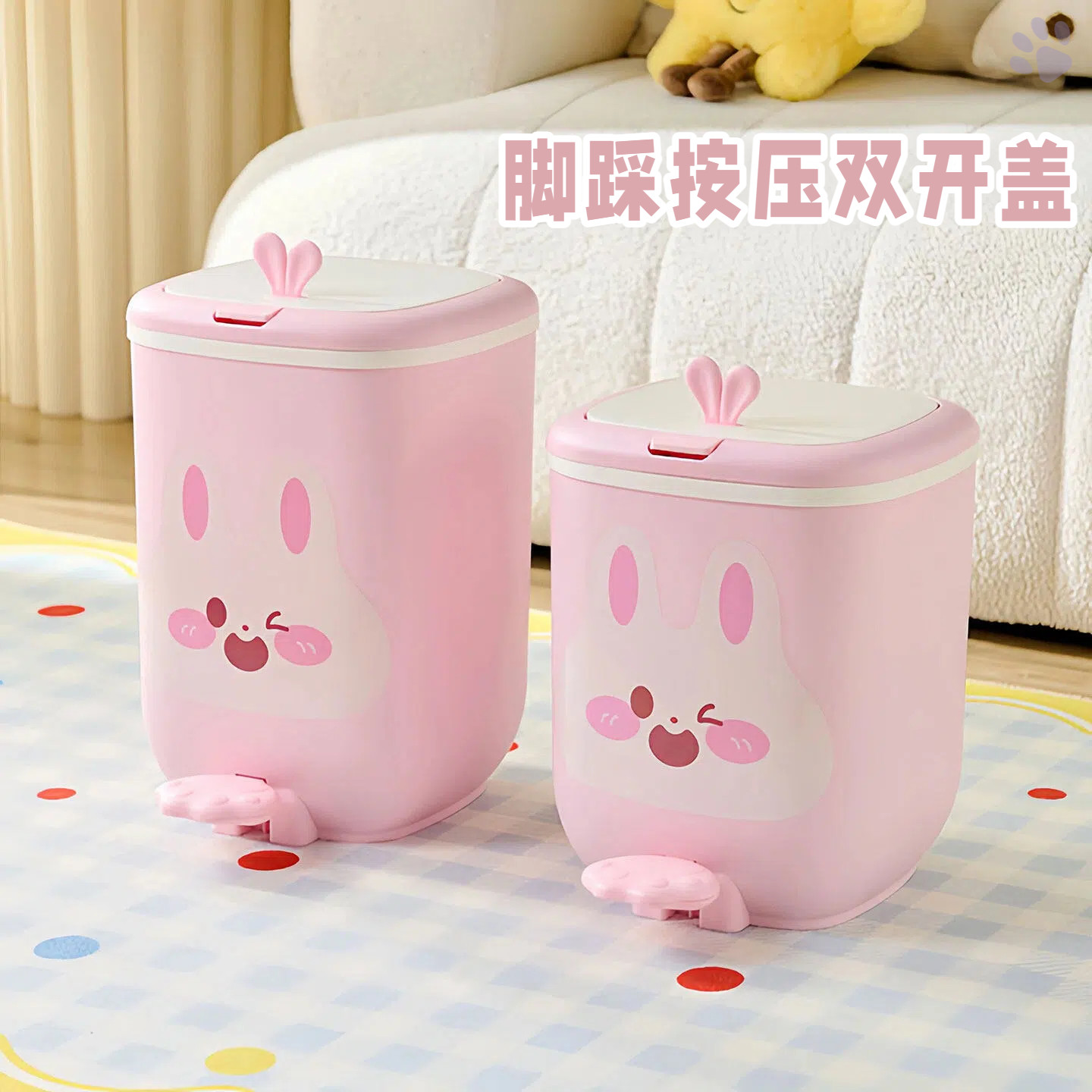 可爱兔子卡通垃圾桶脚踏按压式垃圾桶粉色家用儿童房软妹风垃圾桶