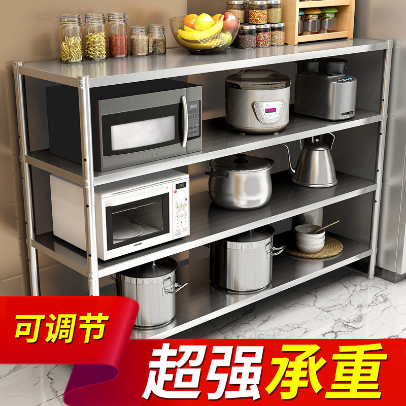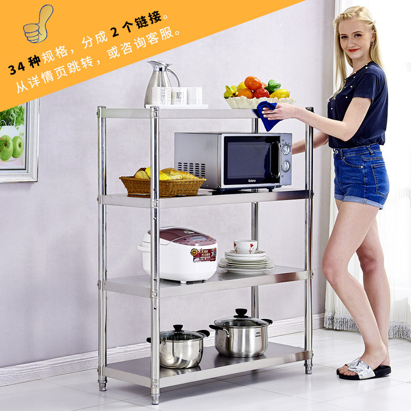 不锈钢家用厨房置物架微波炉烤箱落地4层货架收纳物料架仓储货架