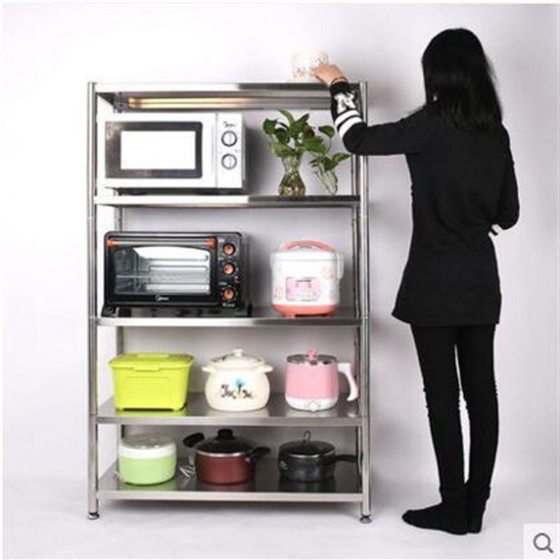 304厨房置物架落地不锈钢微波炉收纳架四层架子储物架4层加厚货架