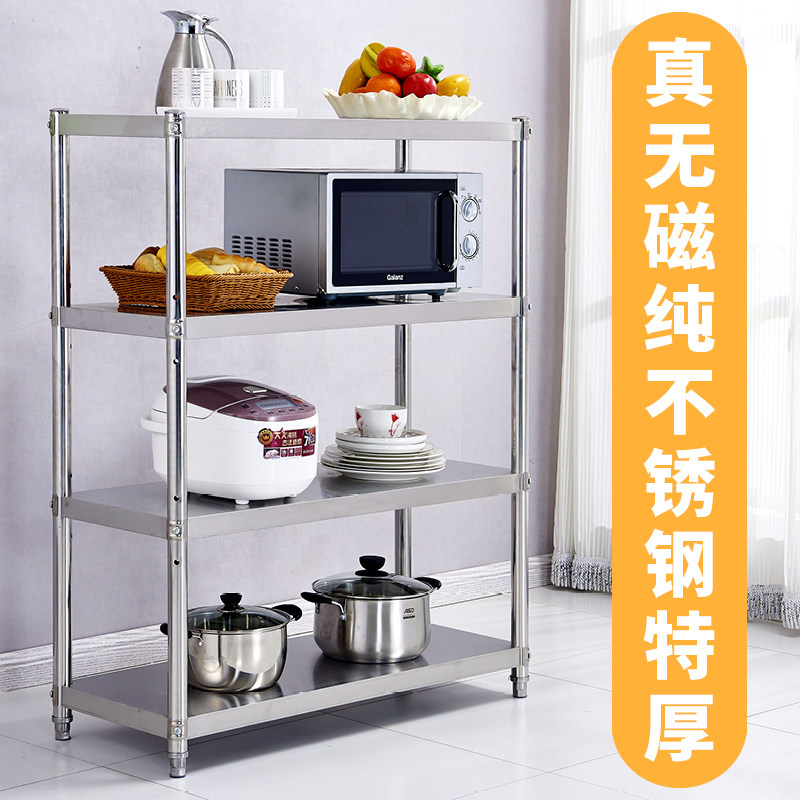 厨房置物架d304不锈钢落地式多层加厚家用三层4层微波炉架子收纳