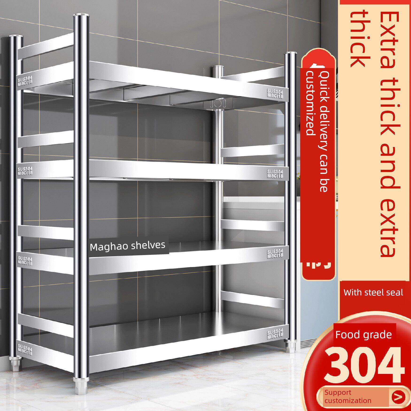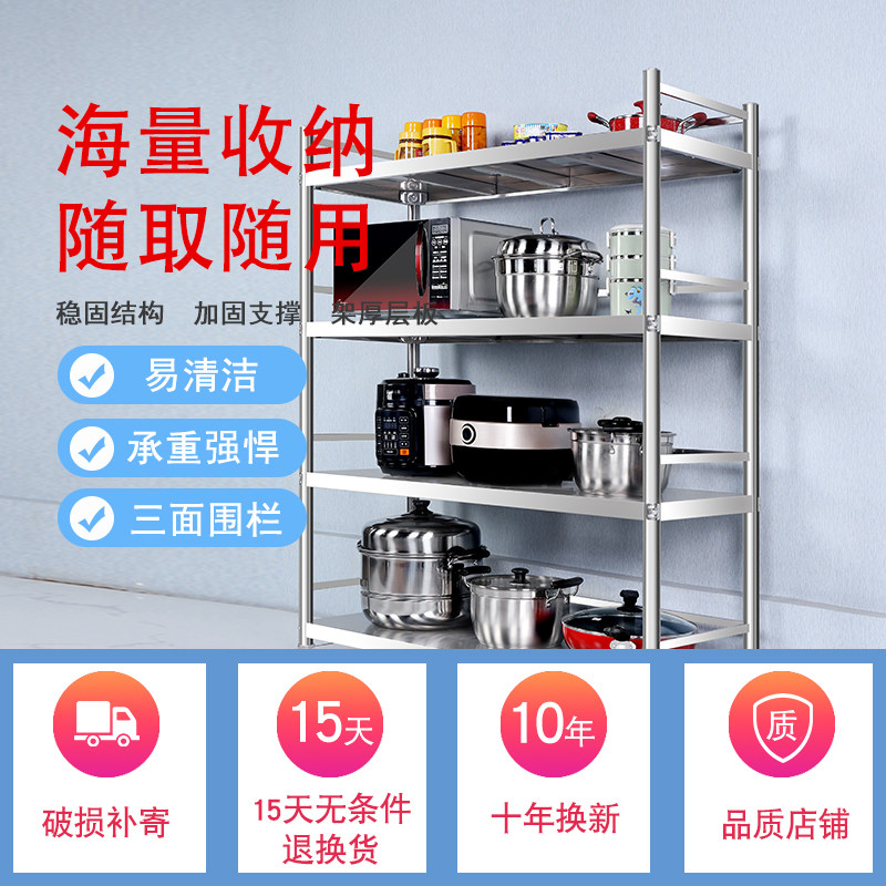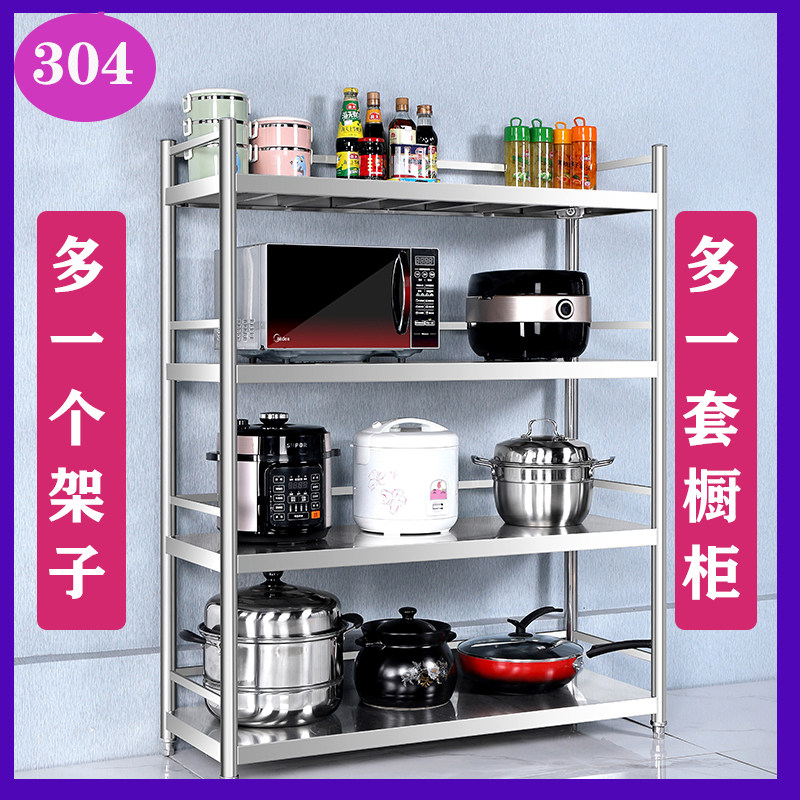 厨房多功能置物架商用304落地多层家用柜子不锈钢架子货架储物4层