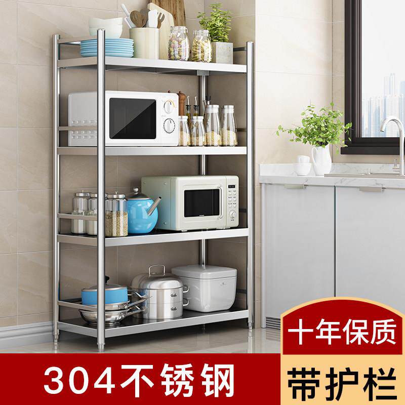 厨房置物架落地多层烤箱微波炉304不锈钢置物4层架带护栏收纳架子
