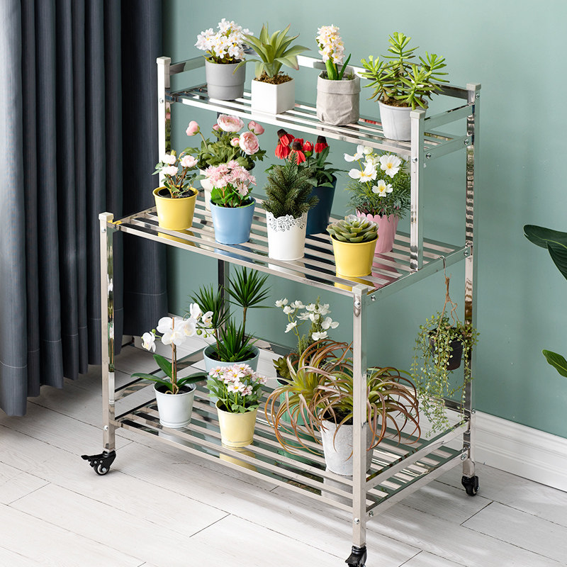 不锈钢花架阶梯落地式置物多层肉盆架子阳台室内客厅铁艺靠墙移动